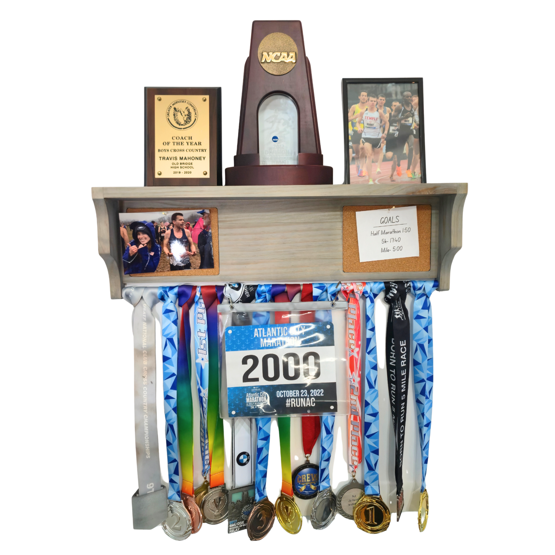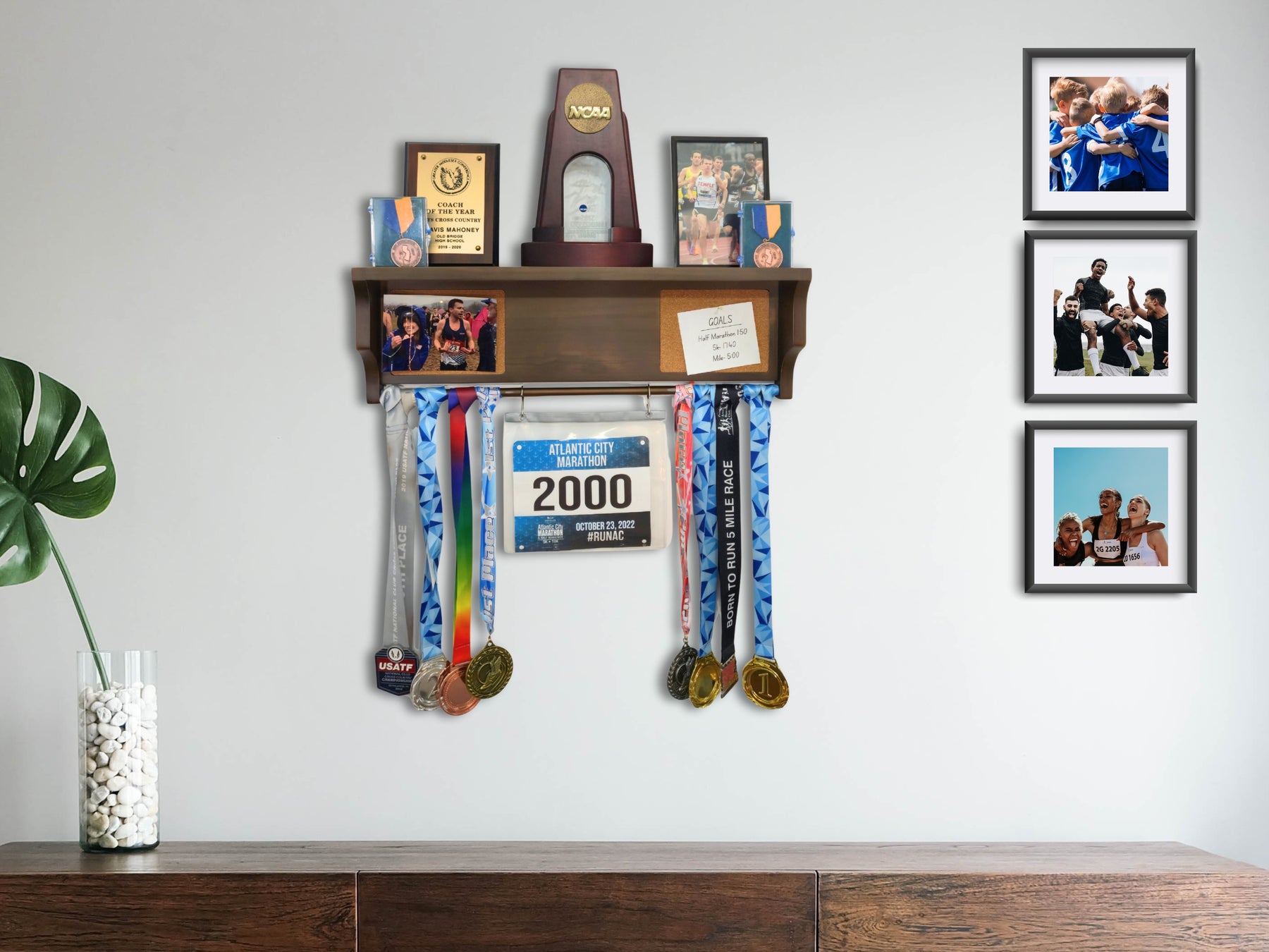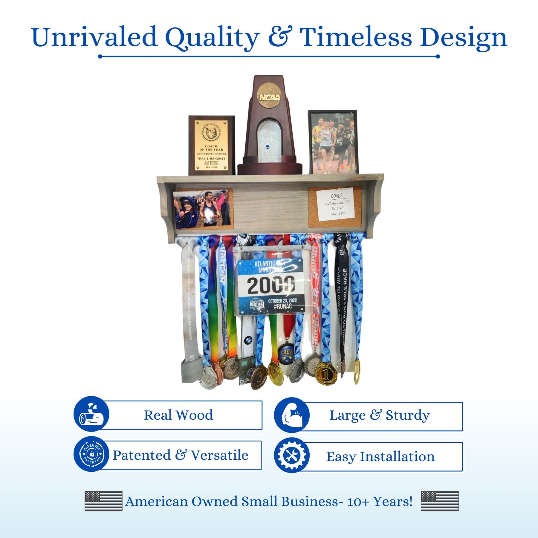 Sturdy Pegs- Strong 1.5 inch pegs, each capable of holding multiple lanyard medals. The stagger design creates space between the award medals for full visual display